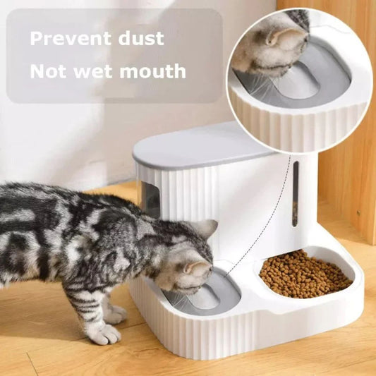 Automatic Pet Feeder & Water Dispenser - Large Capacity Cat Food Bowl with Wet Dry Separation