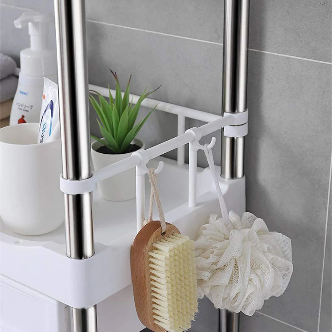 - تخزين فعال للحمام: حافظ على حمامك مرتبًا ومنظمًا باستخدام حل التخزين متعدد الطبقات هذا، وهو مثالي لتخزين مستلزمات النظافة والمناشف والمزيد.