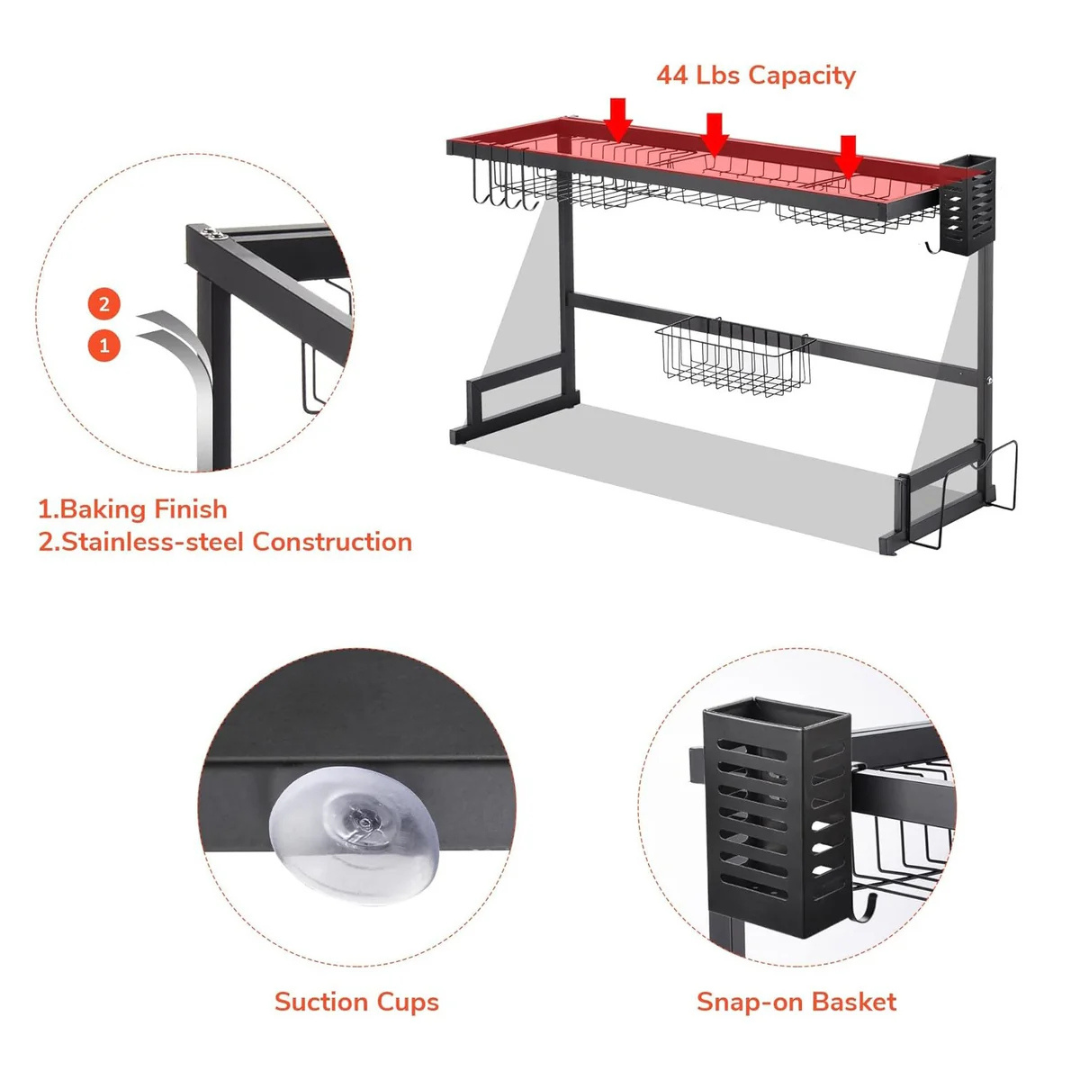 - Space-Saving Design: Maximize your kitchen's space and efficiency with this over-sink rack. Easily access utensils and supplies while keeping your kitchen clean and organized.