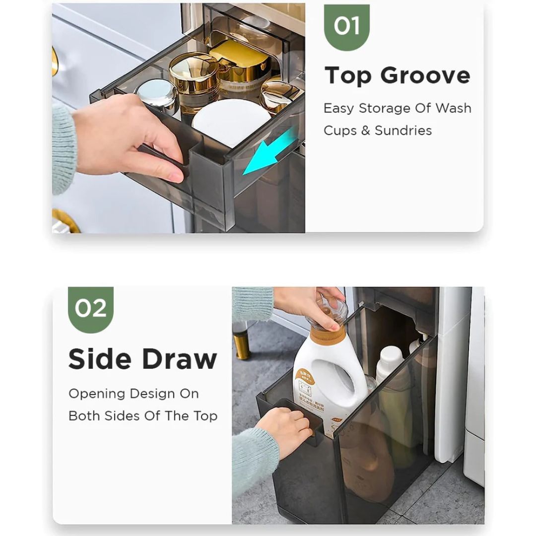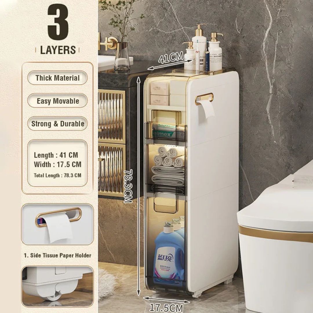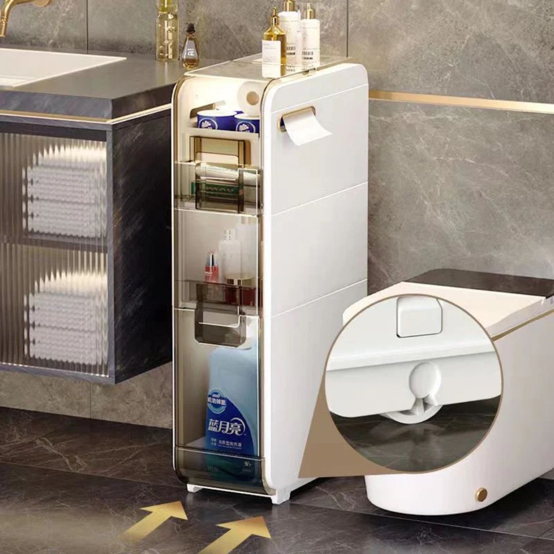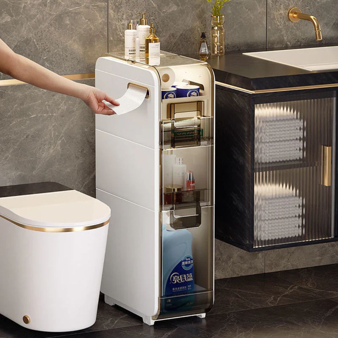 خزانة تخزين حمام فائقة الضيق قابلة للحركة ومتعددة الطبقات على شكل درج