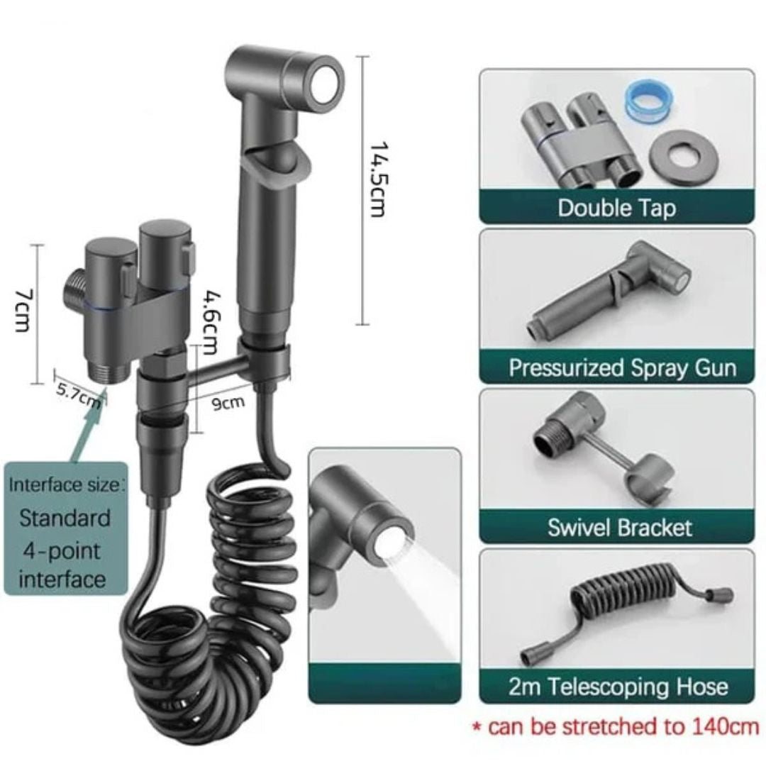 حسّن تجربة حمامك مع رشاش البيديه المحمول للمراحيض. يوفر هذا الدش المزدوج الاستخدام وصنبور المرحاض عالي الضغط أقصى درجات النظافة والراحة. حسّن روتين نظافتك اليوم!