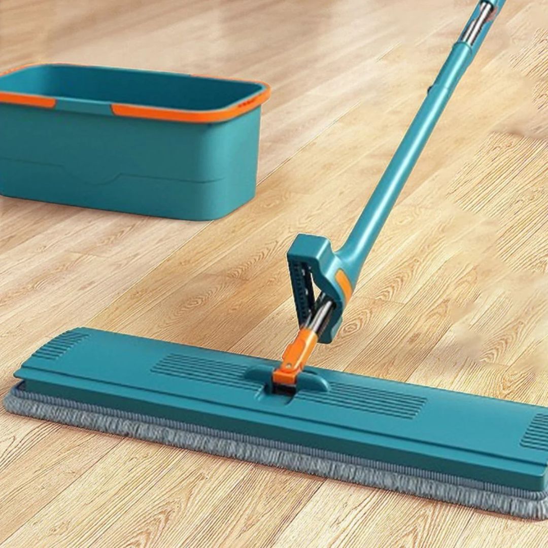 ممسحة بدون استخدام اليدين، ممسحة مسطحة من الألياف الدقيقة ذاتية الضغط مع دلو لتنظيف الأرضيات