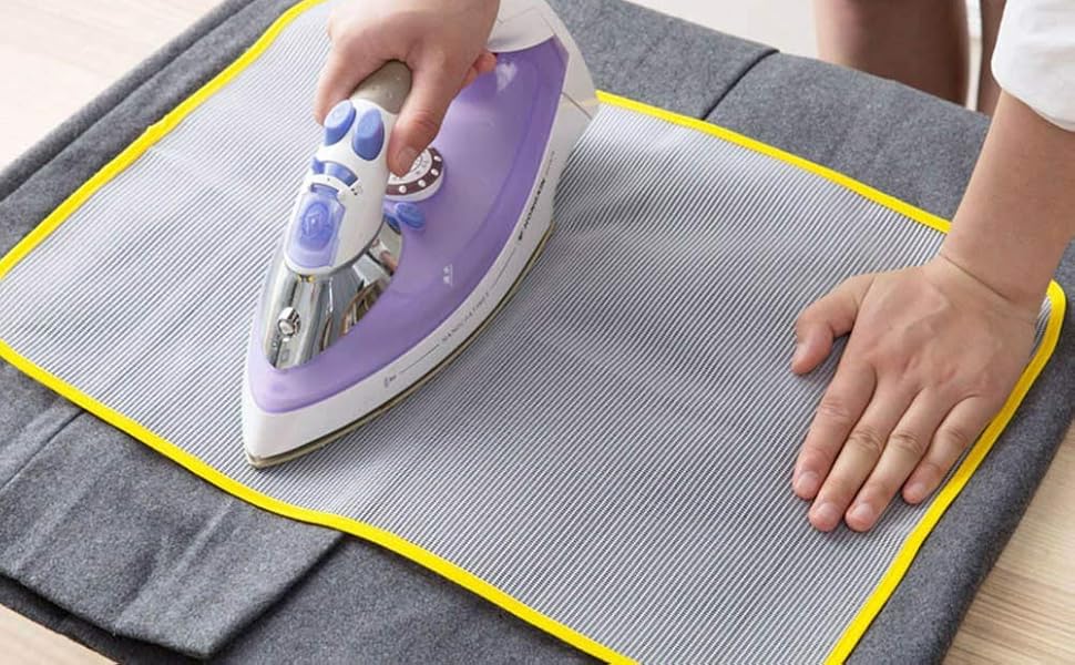 - الوظيفة: يمنع المكواة من ملامسة الملابس بشكل مباشر، ويمنع الحرق والتلوين، ويحمي سطح المكواة من السحابات أو الأزرار؛ كما أن القماش الشبكي الشفاف يجعل من السهل عليك رؤية عملية الكي.