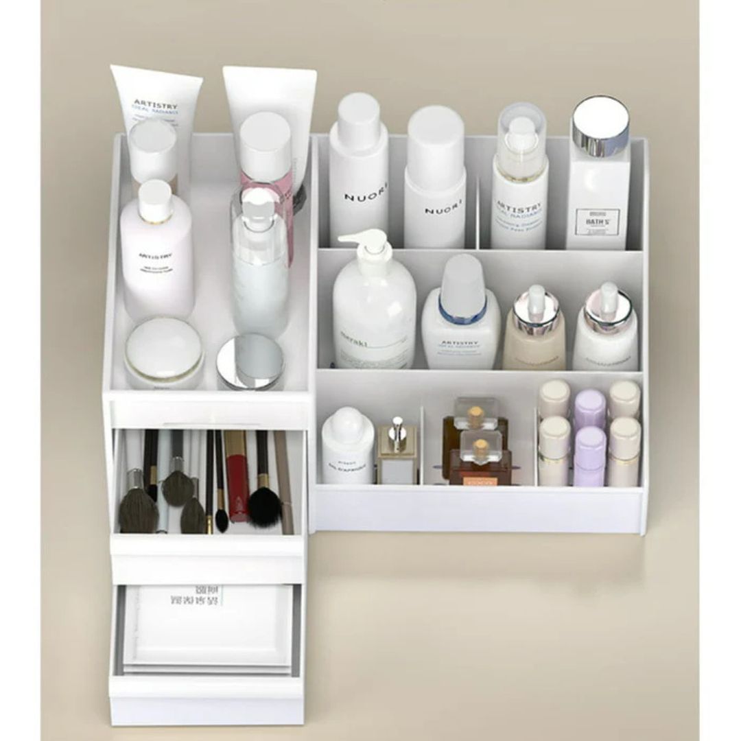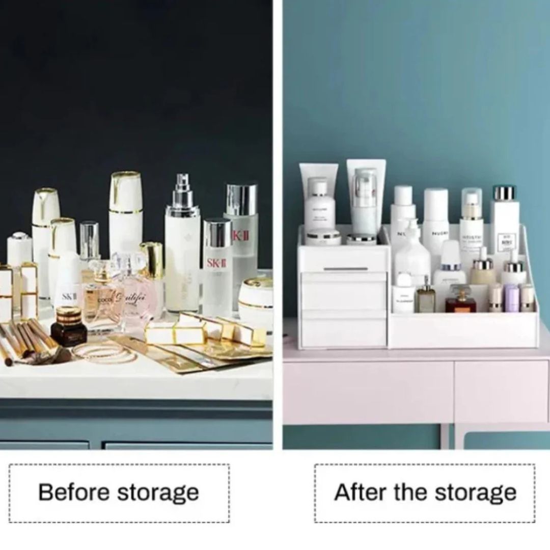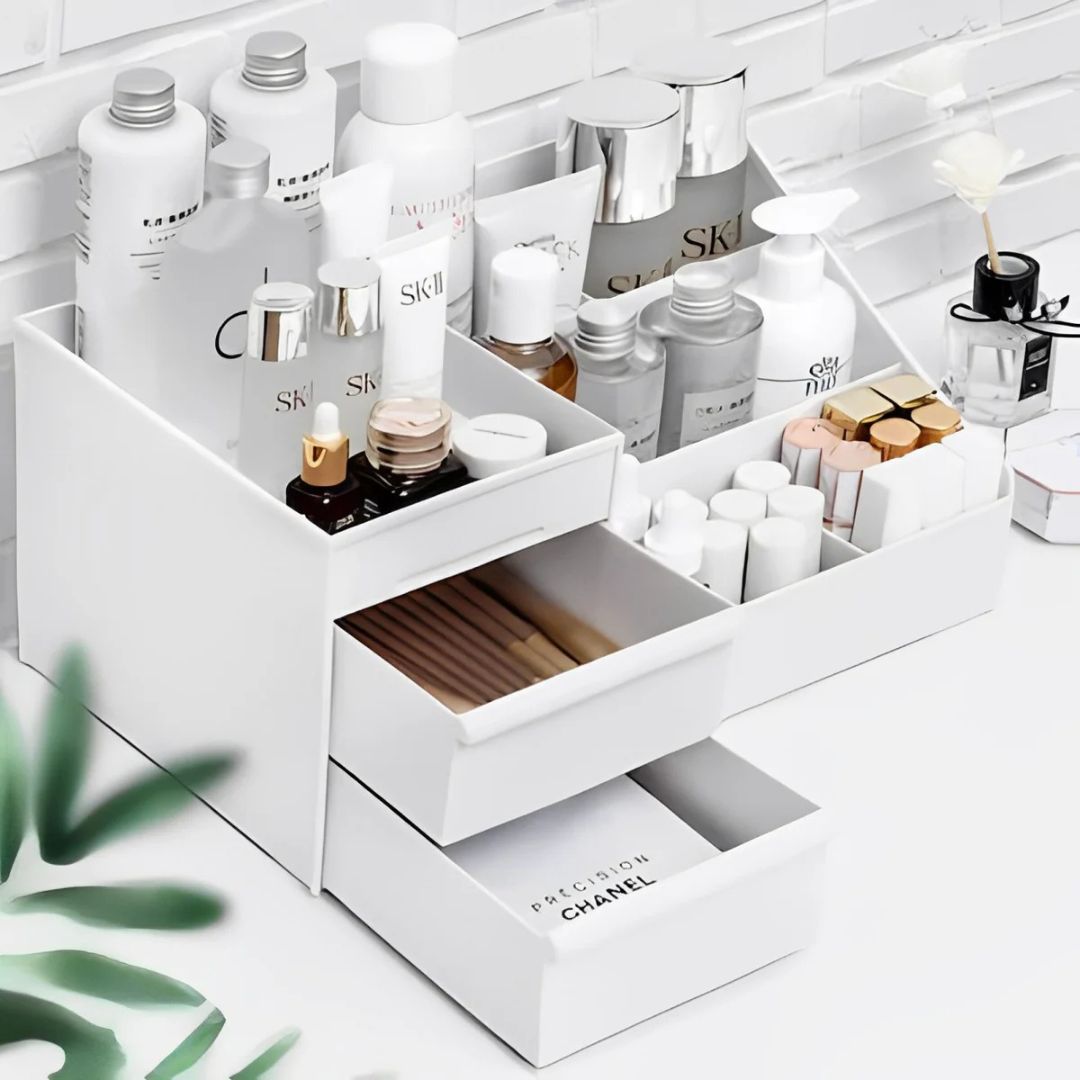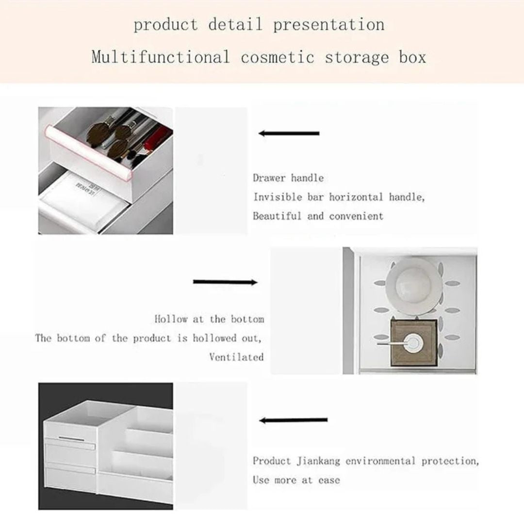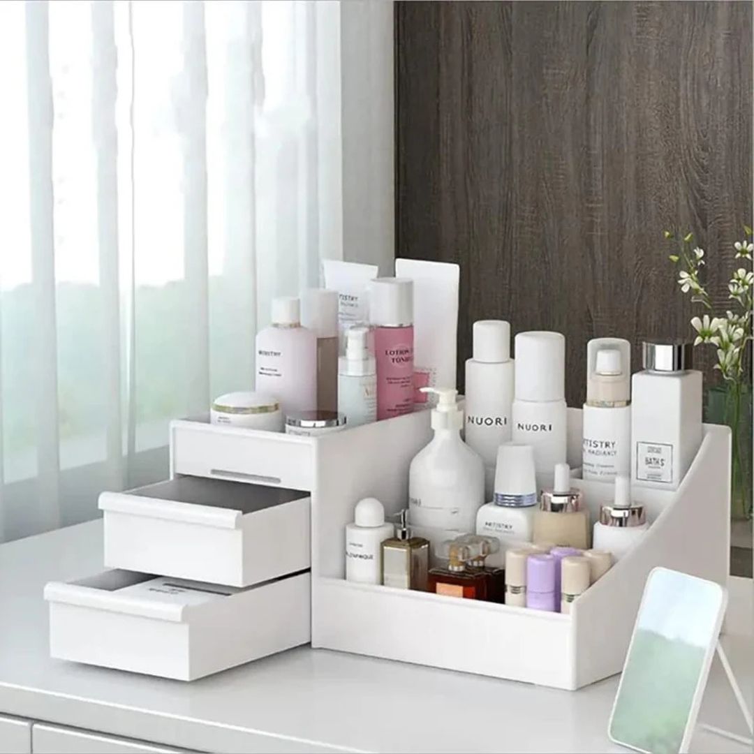 غيّري منضدة مكياجكِ مع منظم المكياج المكتبي متعدد الاستخدامات. يتميز هذا الصندوق متعدد الاستخدامات بأدراج لمستلزمات غرفة النوم أو الحمام، ويحافظ على أساسيات جمالكِ مرتبة وسهلة الوصول. ارتقِ بمستوى تنظيمكِ اليوم!