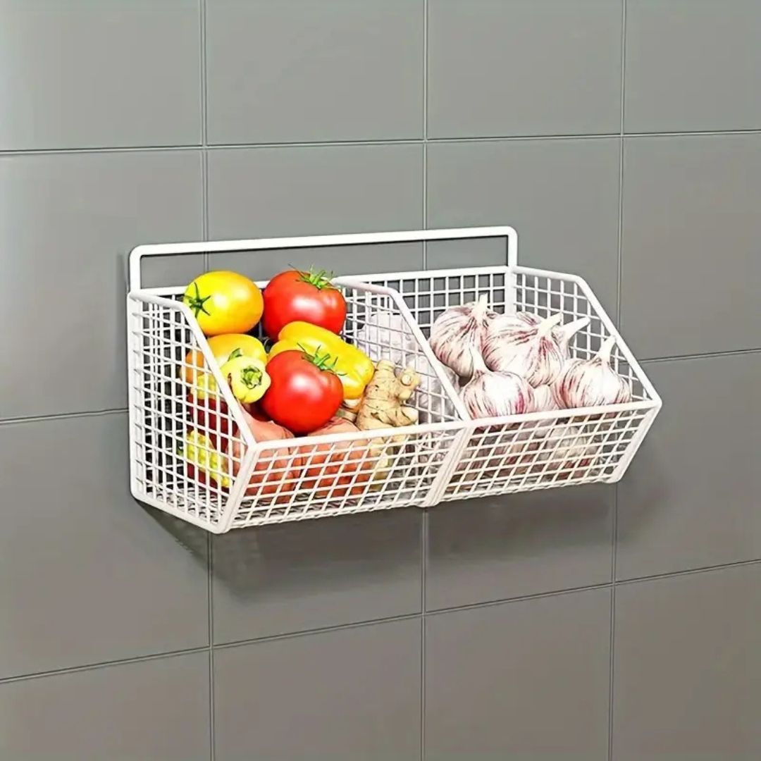 سلة تخزين مطبخ حديثة مثبتة على الحائط - منظم توابل معدني متين معلق للثوم والبصل والخضراوات