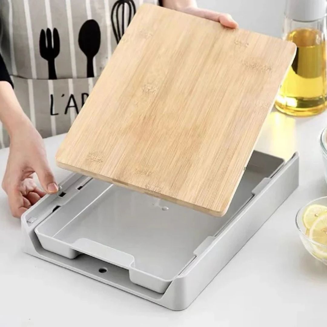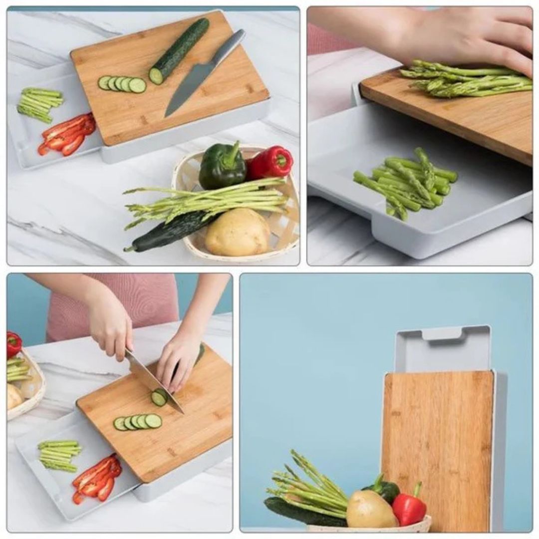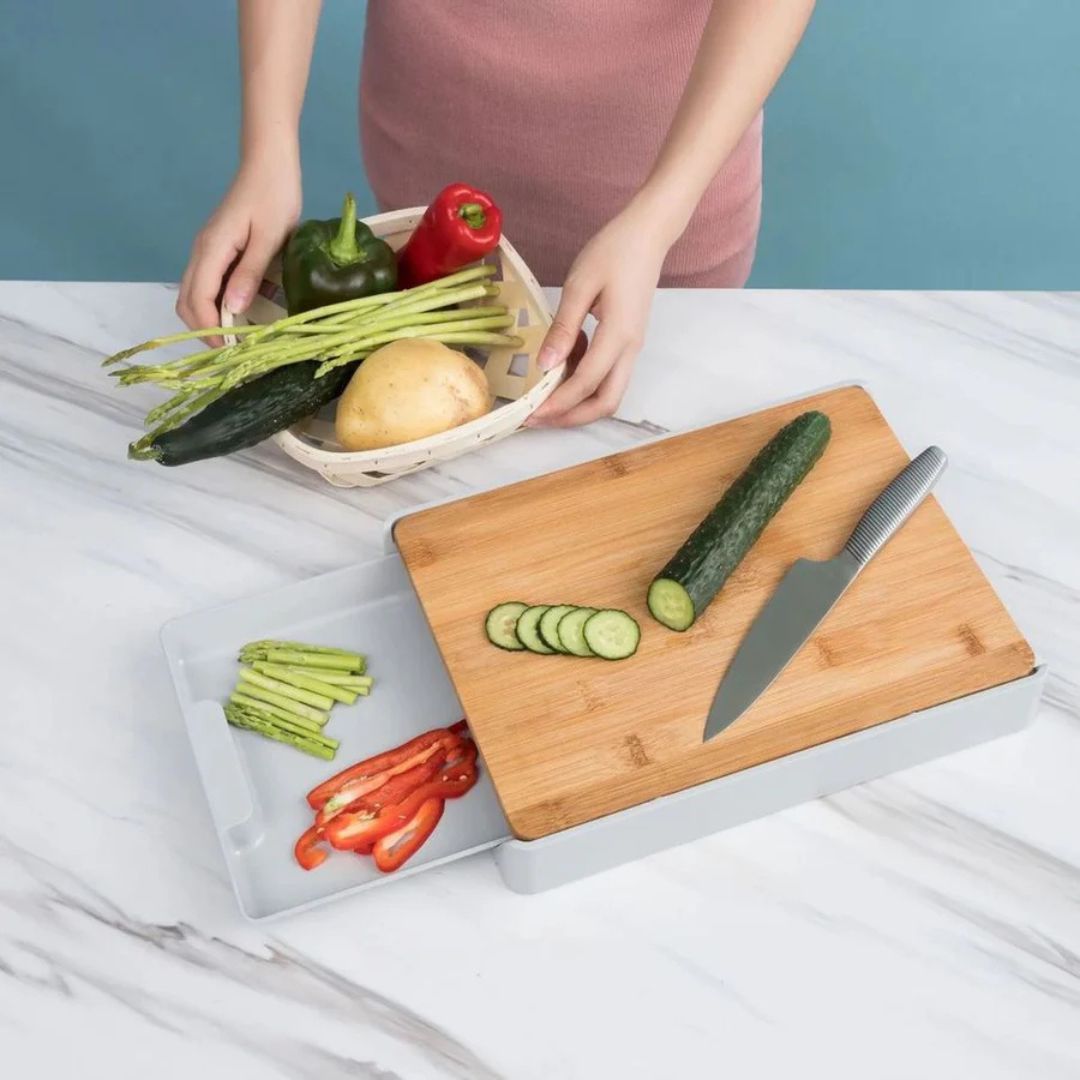 لوح تقطيع متعدد الوظائف من الخيزران على شكل درج، أداة مطبخ