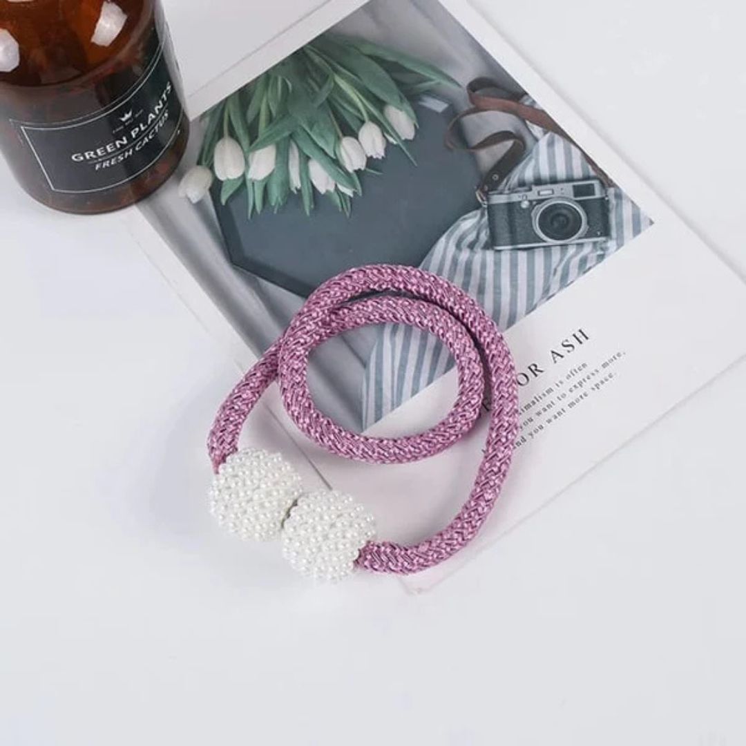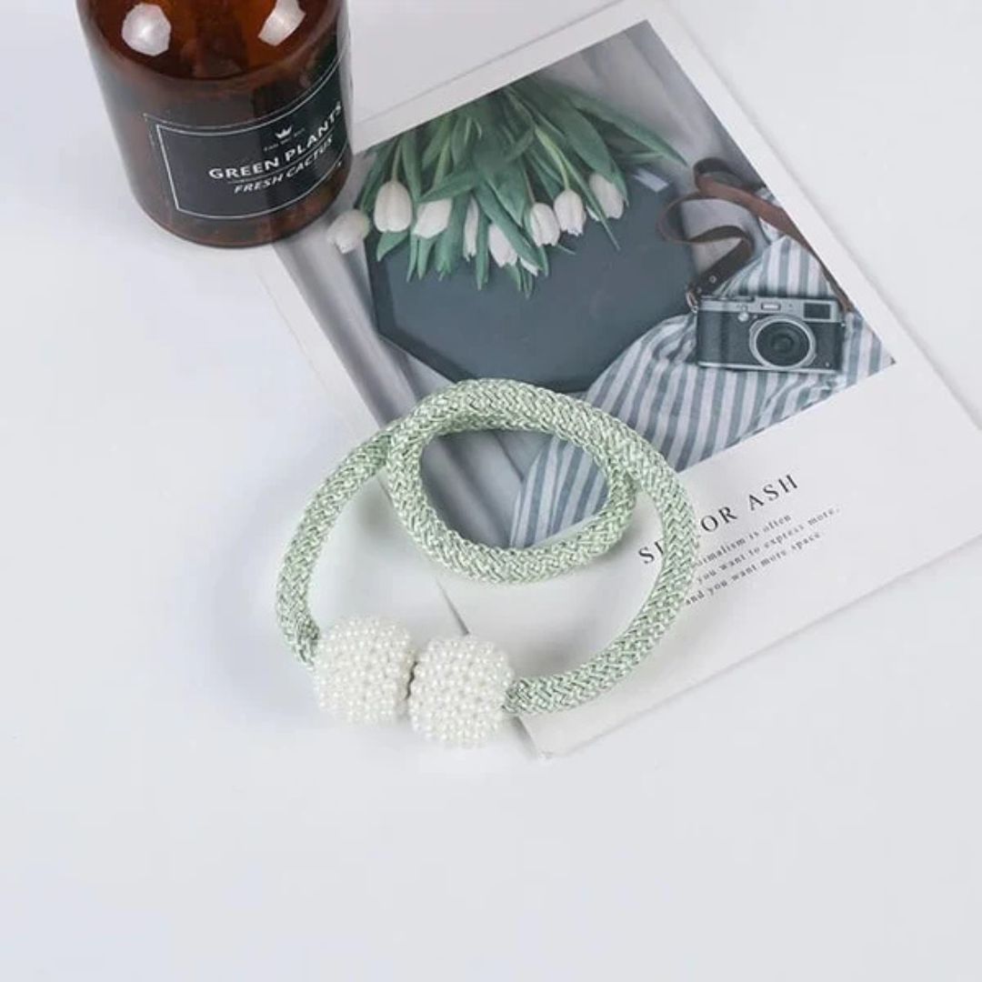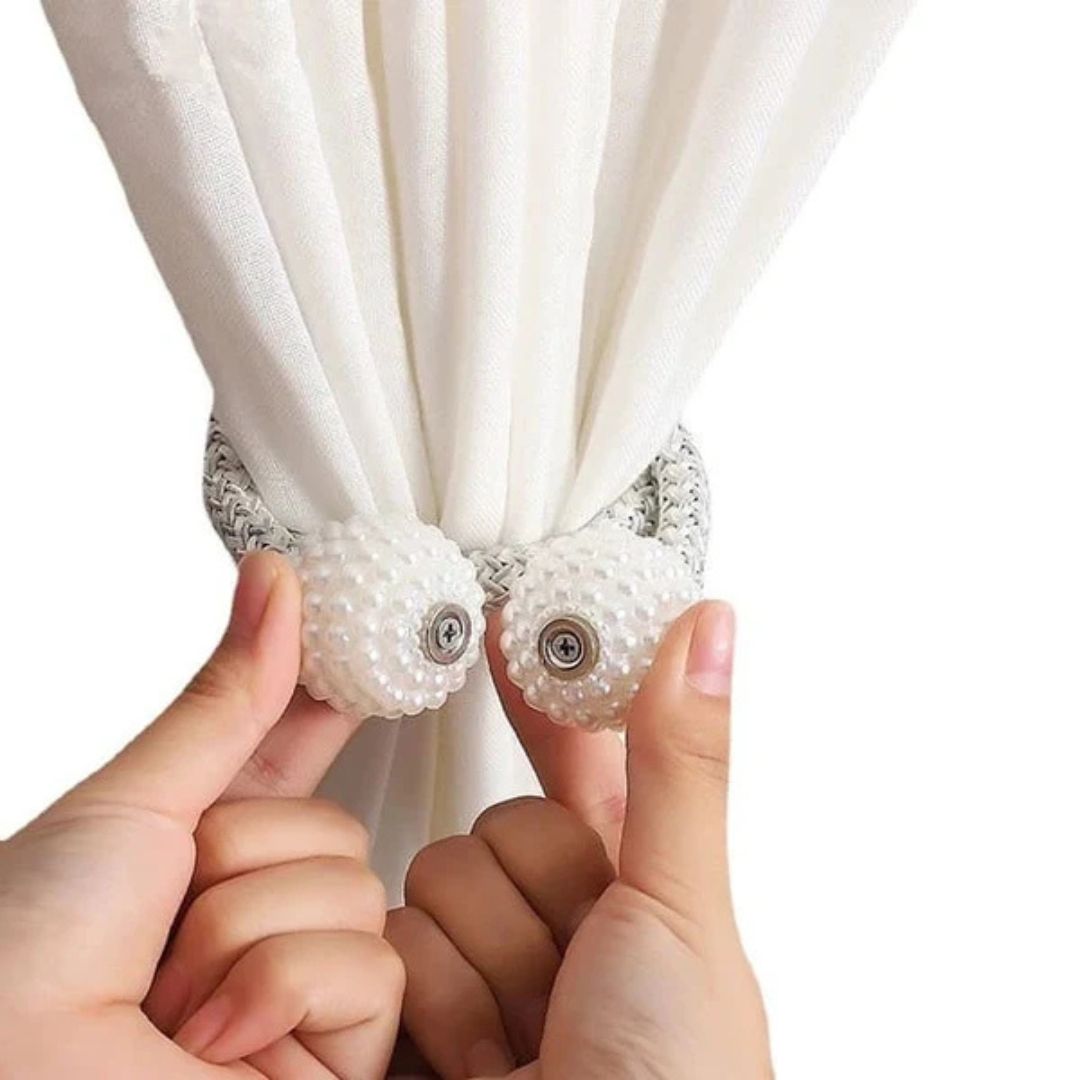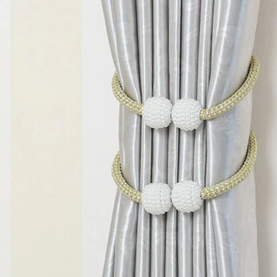 حبل ربط الستائر المغناطيسي اللؤلؤي - مشبك ربط خلفي لتزيين الستائر [قطعتان]