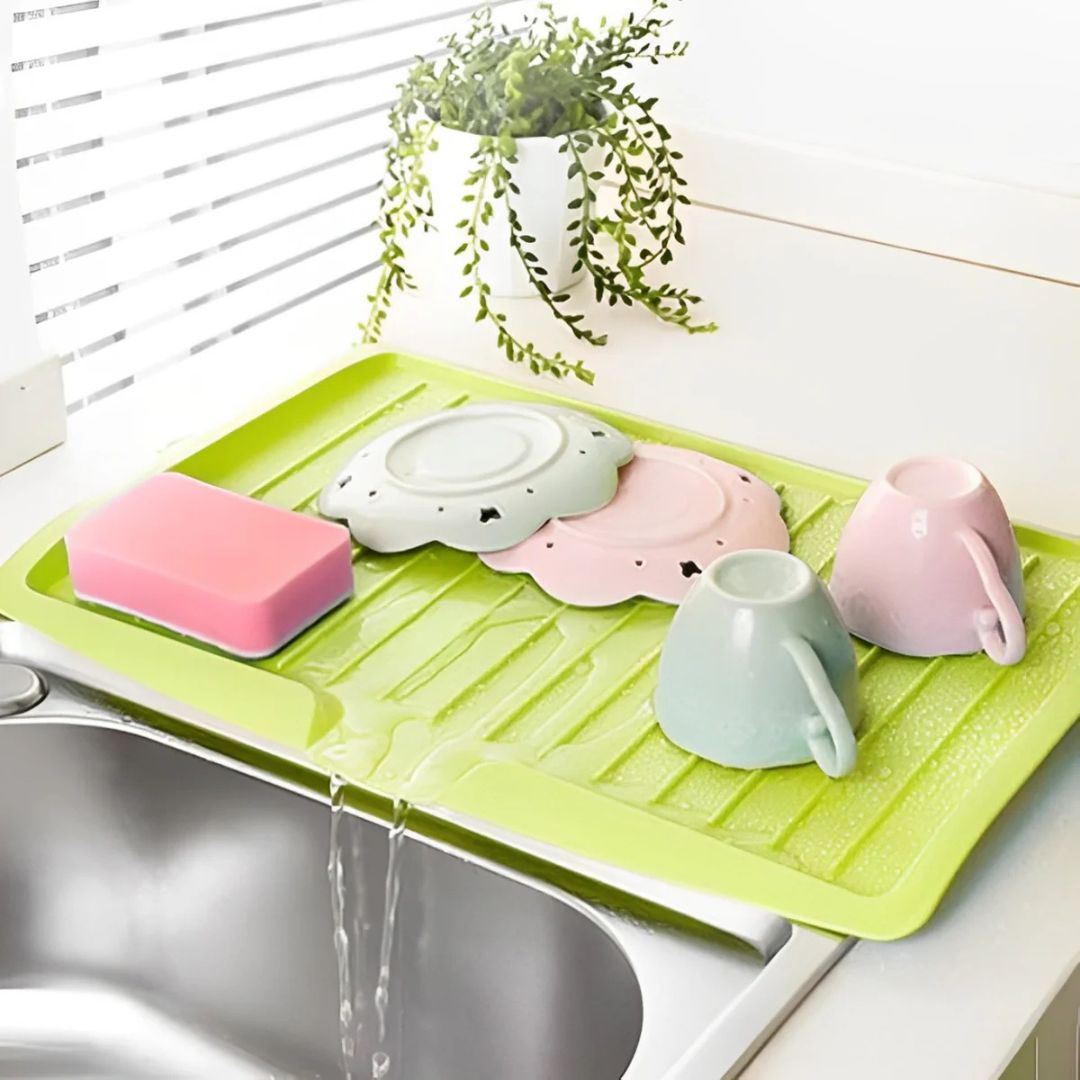 نظّف مطبخك مع رف تجفيف أطباق الحوض هذا. يتميز بحامل لتجفيف الأطباق وتصميم جانبي قابل للطي، مما يُجفّف الأطباق بكفاءة مع توفير مساحة على الطاولة.