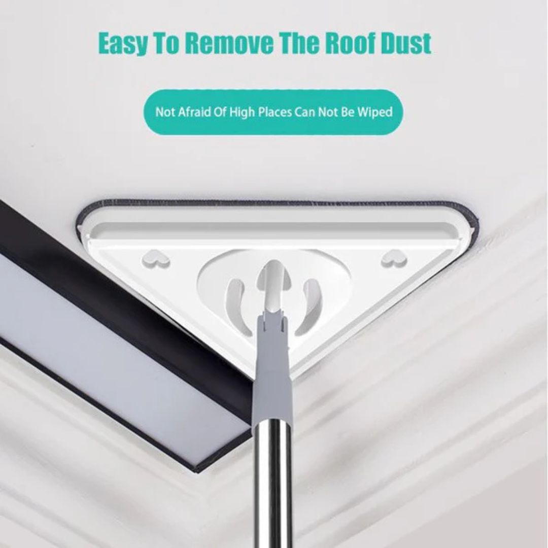 ممسحة تنظيف عميق مثلثة الشكل، تدور 360 درجة، عمود تمديد طويل، وسادتان وشفرة ممسحة