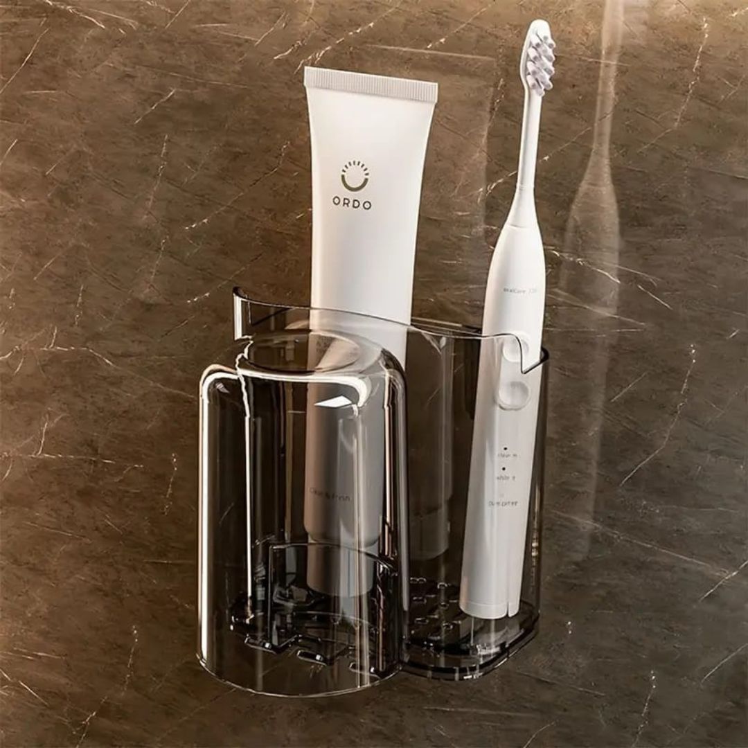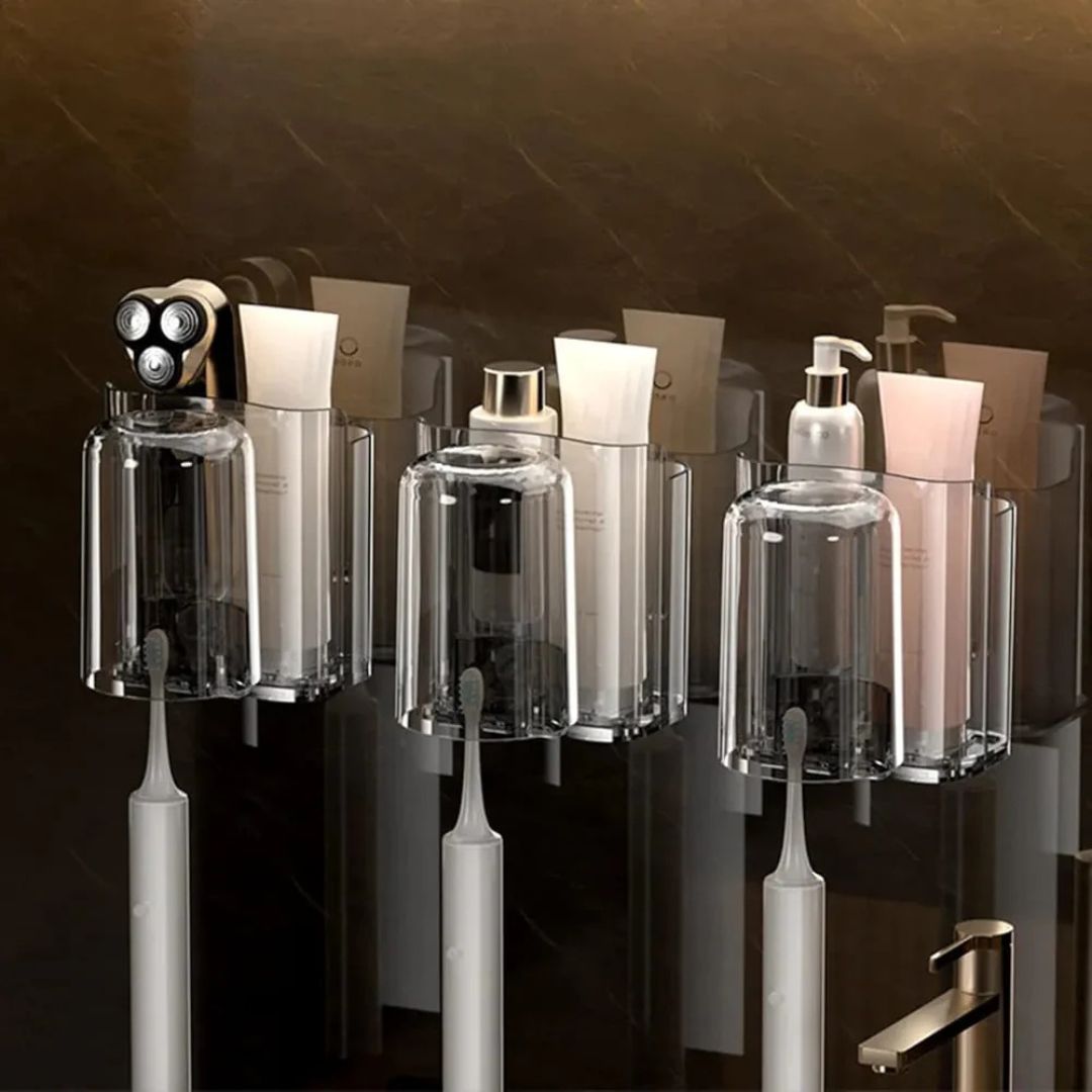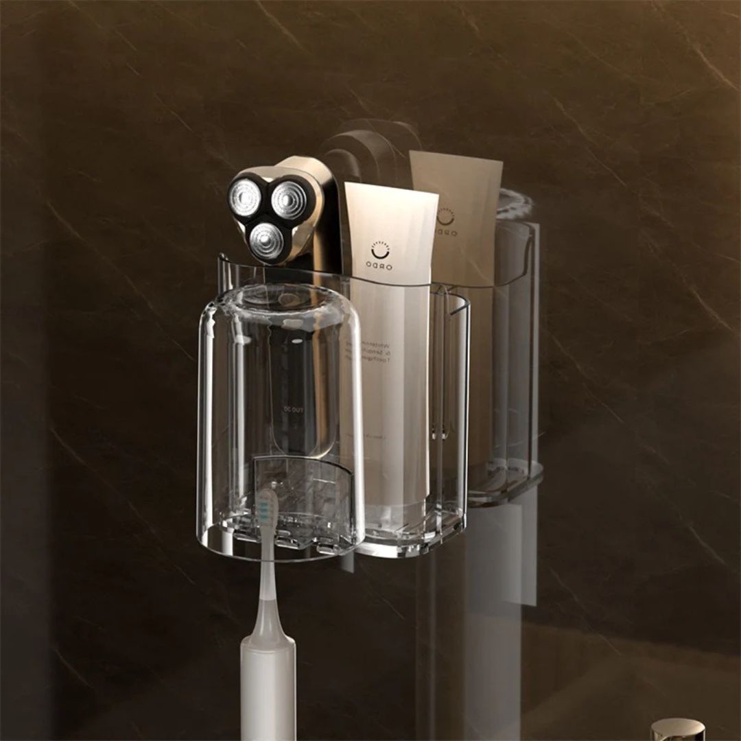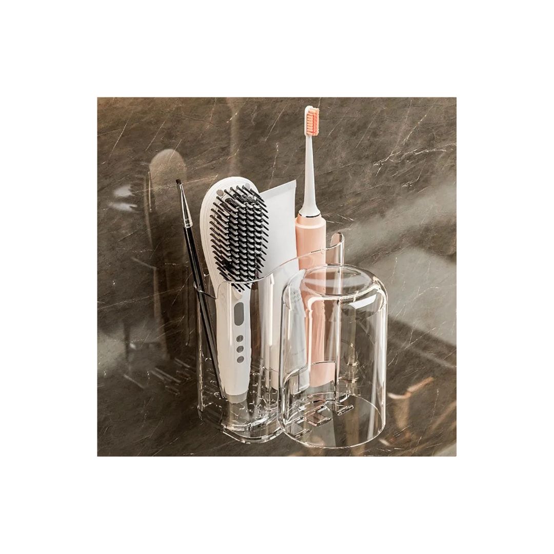 - تصميم مثبت على الحائط: يوفر مساحة على الطاولة وينظم مستلزمات الحمام الأساسية.