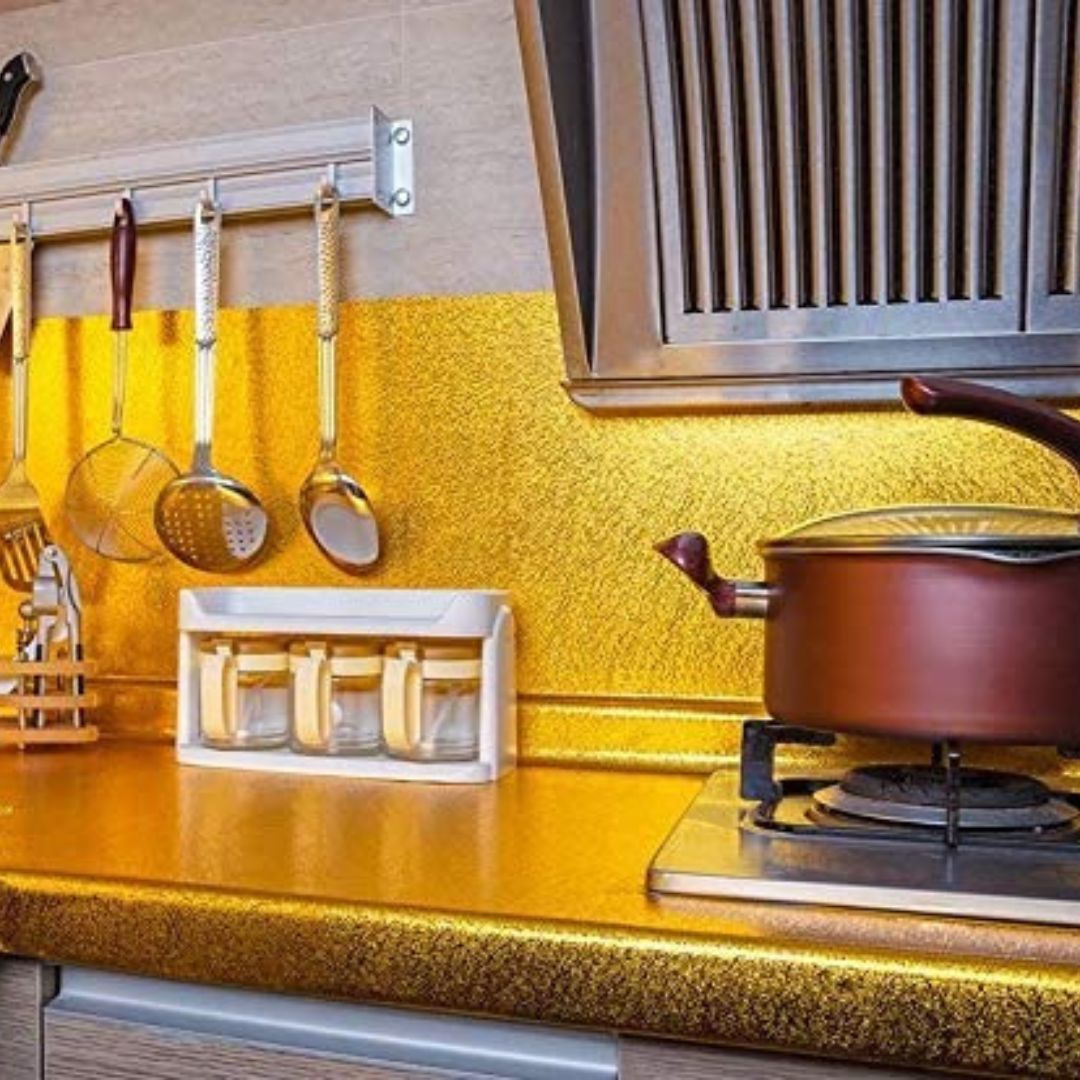 ملصق ورق حائط ذاتي اللصق من رقائق الألومنيوم مقاوم للماء والزيت للمطبخ (ذهبي)